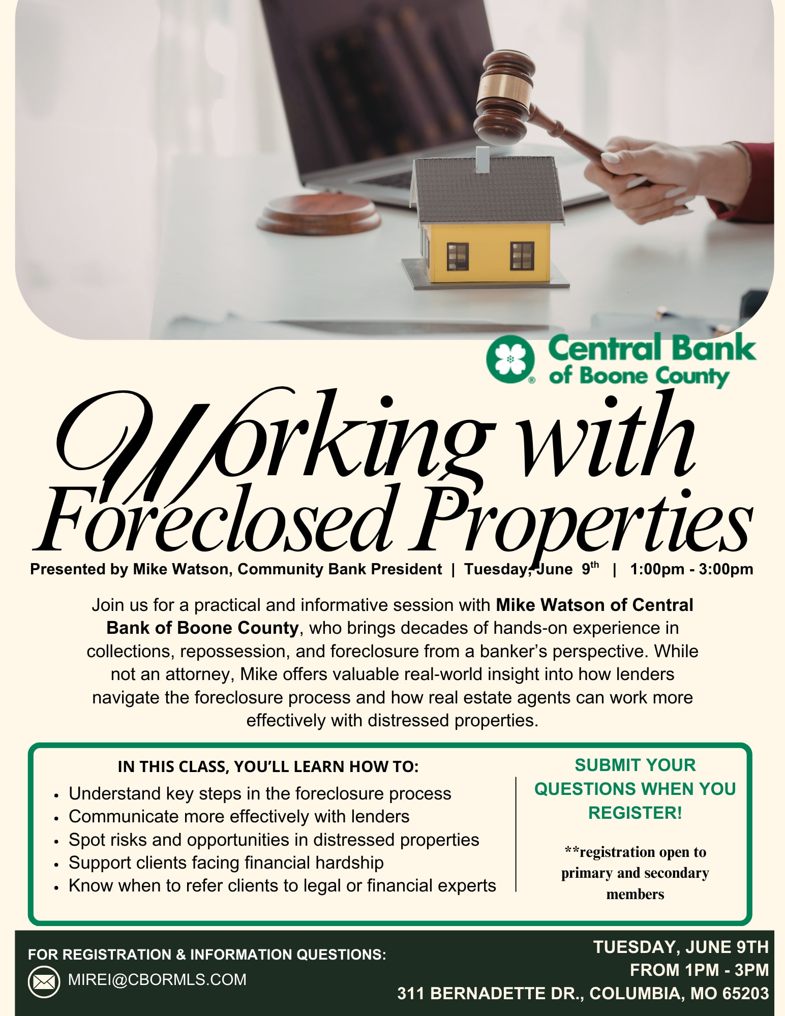 submit your foreclosure questions when you register!