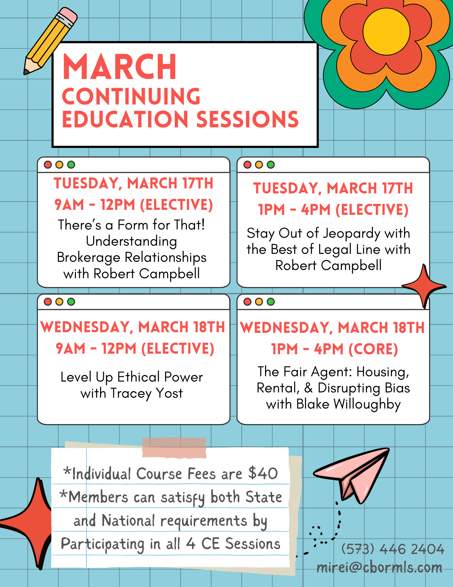 Tuesday, March 17th 9am - 12pm There's a Form for That: Understanding Brokerage Relationships (Elective)