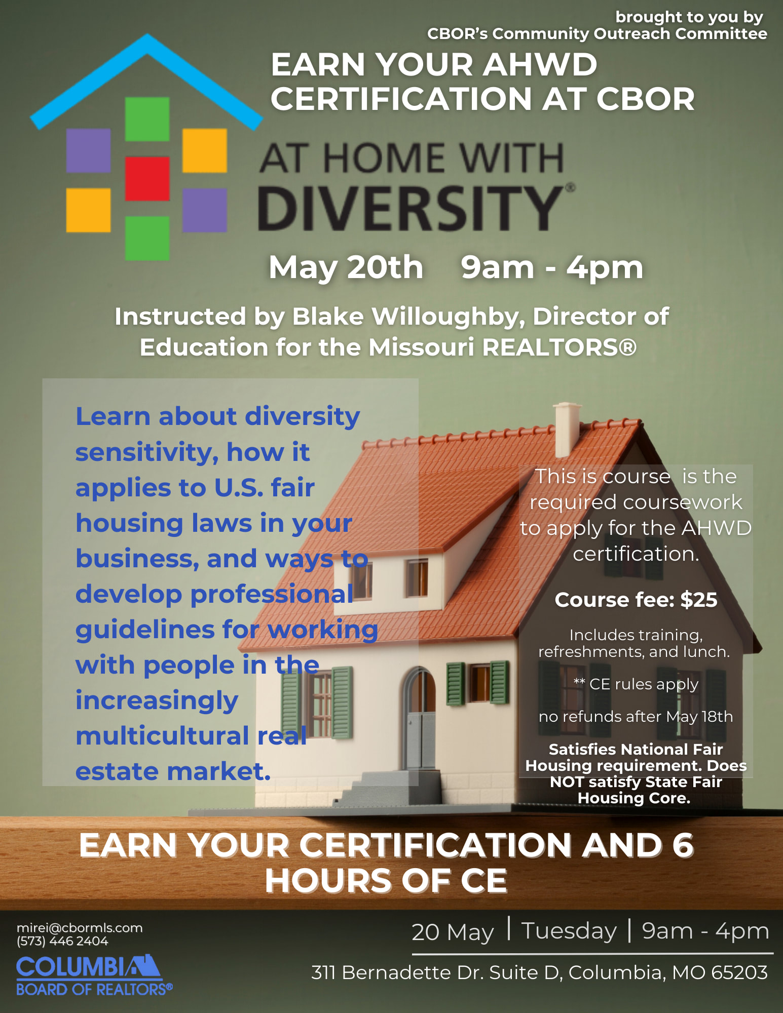 $25 Includes certification training, refreshments, and lunch